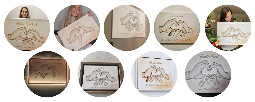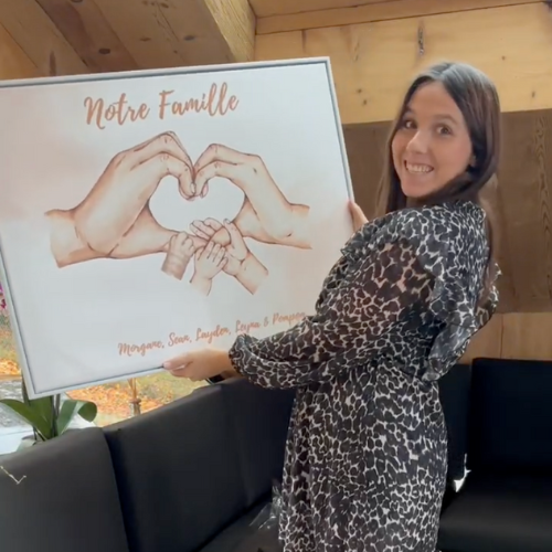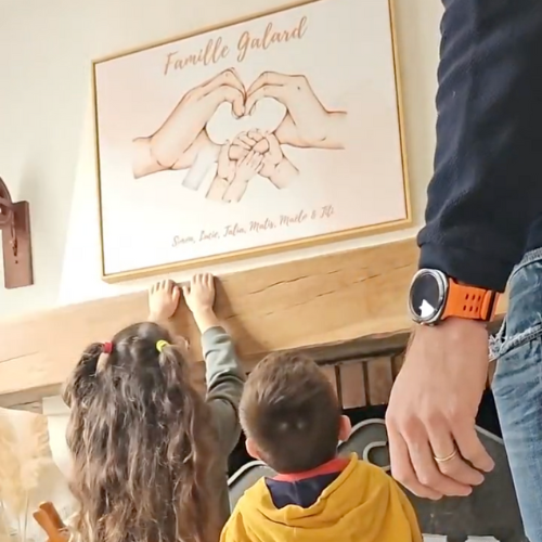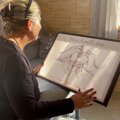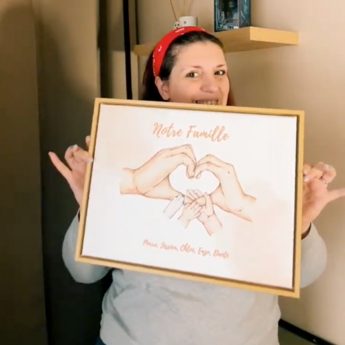 Ajoutez simplement une légende (ex. « Famille Dupont ») et les prénoms de vos proches : votre œuvre prendra vie en quelques secondes.